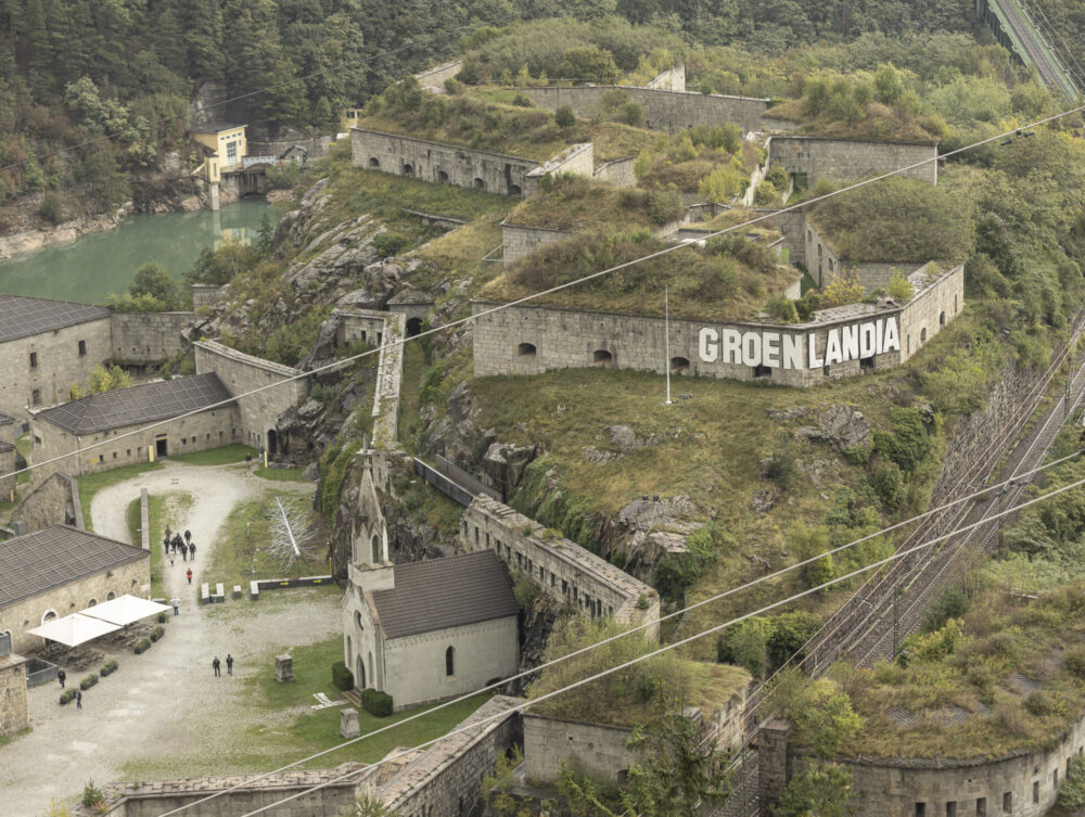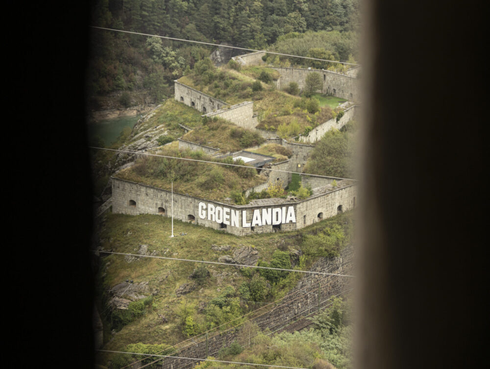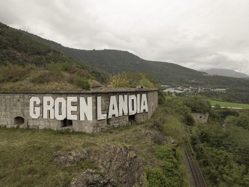 In weithin sichtbaren Lettern – formal angelehnt an das ikonische „Hollywood“-Sign – prangt das Wort GROENLANDIA auf den Mauern der historischen Festung Franzensfeste. Die Installation des Künstlers Leander Schwazer nutzt die populärer Ikonografie, um den gewohnten Zusammenhang zu durchbrechen und neue Assoziationen zu wecken: Was hat Grönland – die entlegene, von Eis und geopolitischen Begehrlichkeiten geprägte Insel – mit dieser ehemaligen militärischen Bastion in Südtirol zu tun?